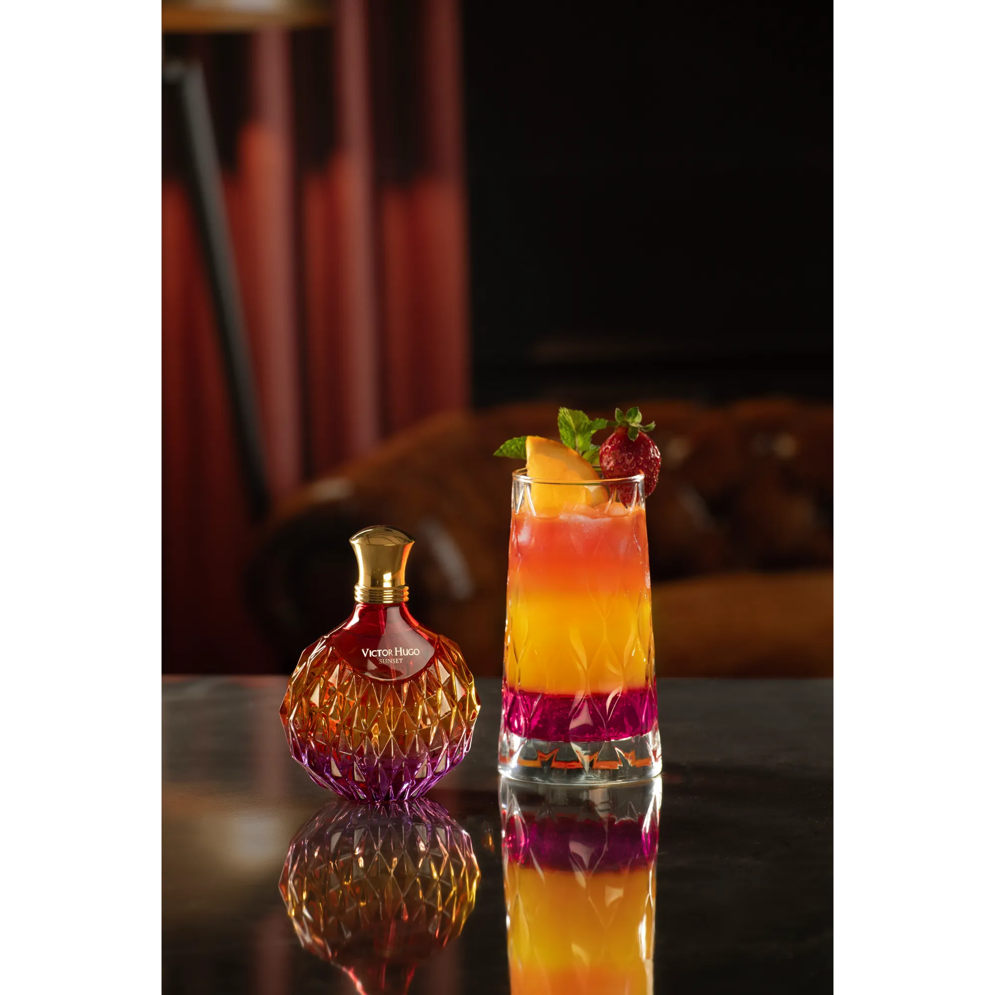 💎 بطری فوق‌العاده چشم‌گیر و لاکچریترکیب رنگ نارنجی–صورتی–بنفش با تراش‌های کریستالی.