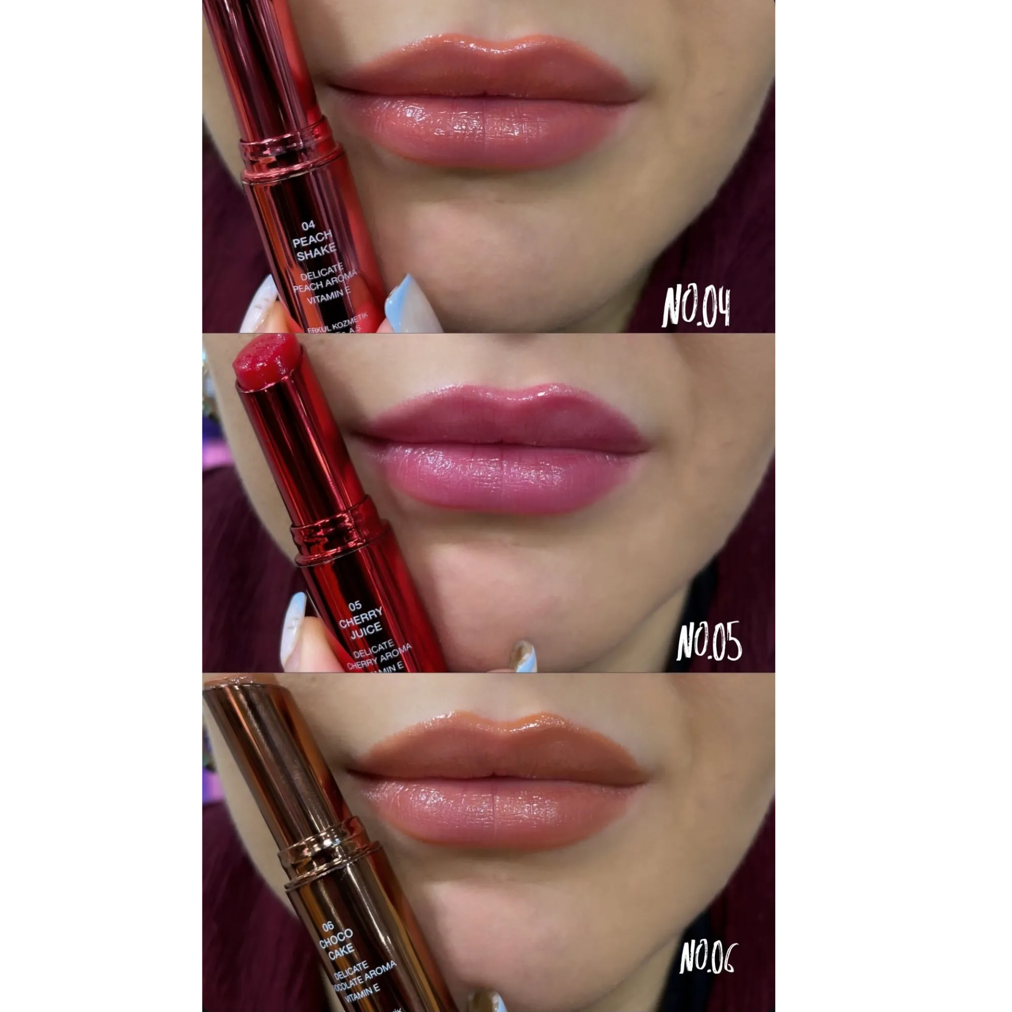 ۲️⃣ میتونی بهتنهایی برای رنگی طبیعی استفاده کنی یا روی رژ لب برای درخشندگی بیشتر.
