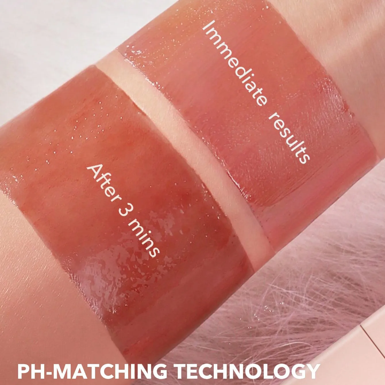 بافت سبک و ژله‌ای آن، بدون چسبندگی روی لب می‌نشیند و در چند دقیقه رنگ را مطابق pH طبیعی پوستت تنظیم می‌کند؛ یعنی روی هر لب، یک رنگ منحصر‌به‌فرد و اختصاصی می‌سازد.