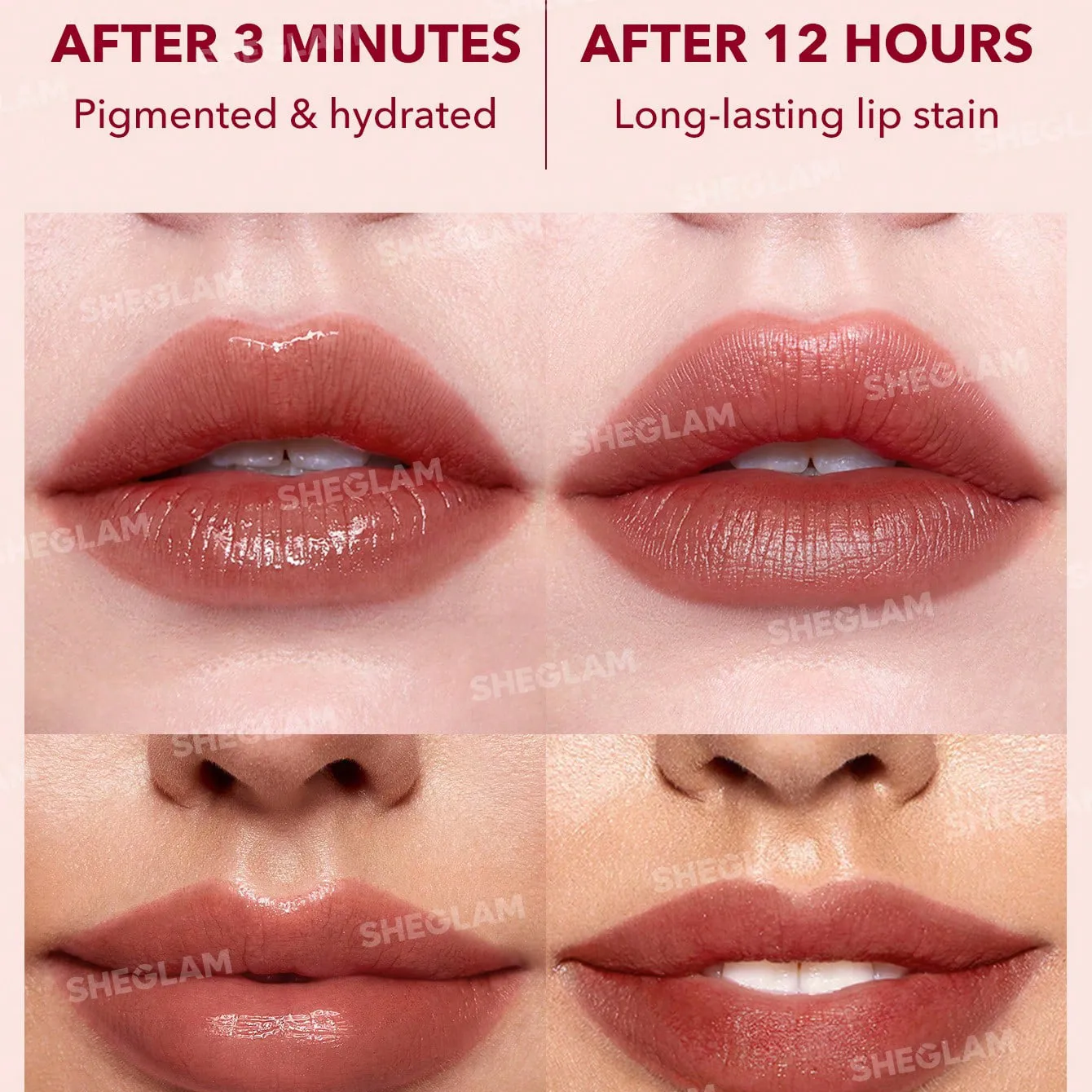 و بعد از ۱۲ ساعت، یک stain طبیعی و زیبا روی لب باقی می‌ماند — بدون پوسته‌پوسته، بدون ماسیدگی.
