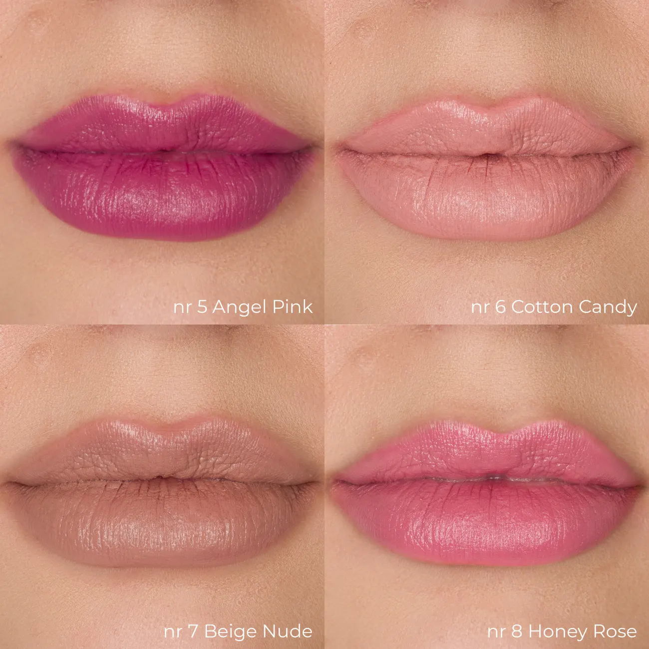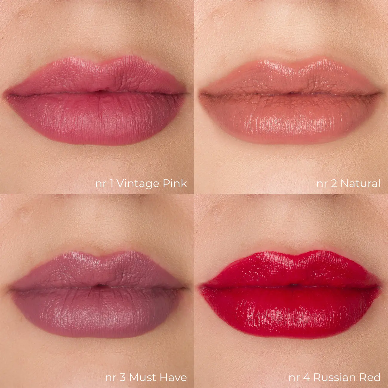رژ ما اپیک نام 1 Vintage Pink, 10 Mauve Petal, 2 Natural, 3 Must Have, 4 Russian Red, 5 Angel Pink, 6 cotton candy, 7 Beige Nude, 8 Honey Rose, 9 Cool Crush