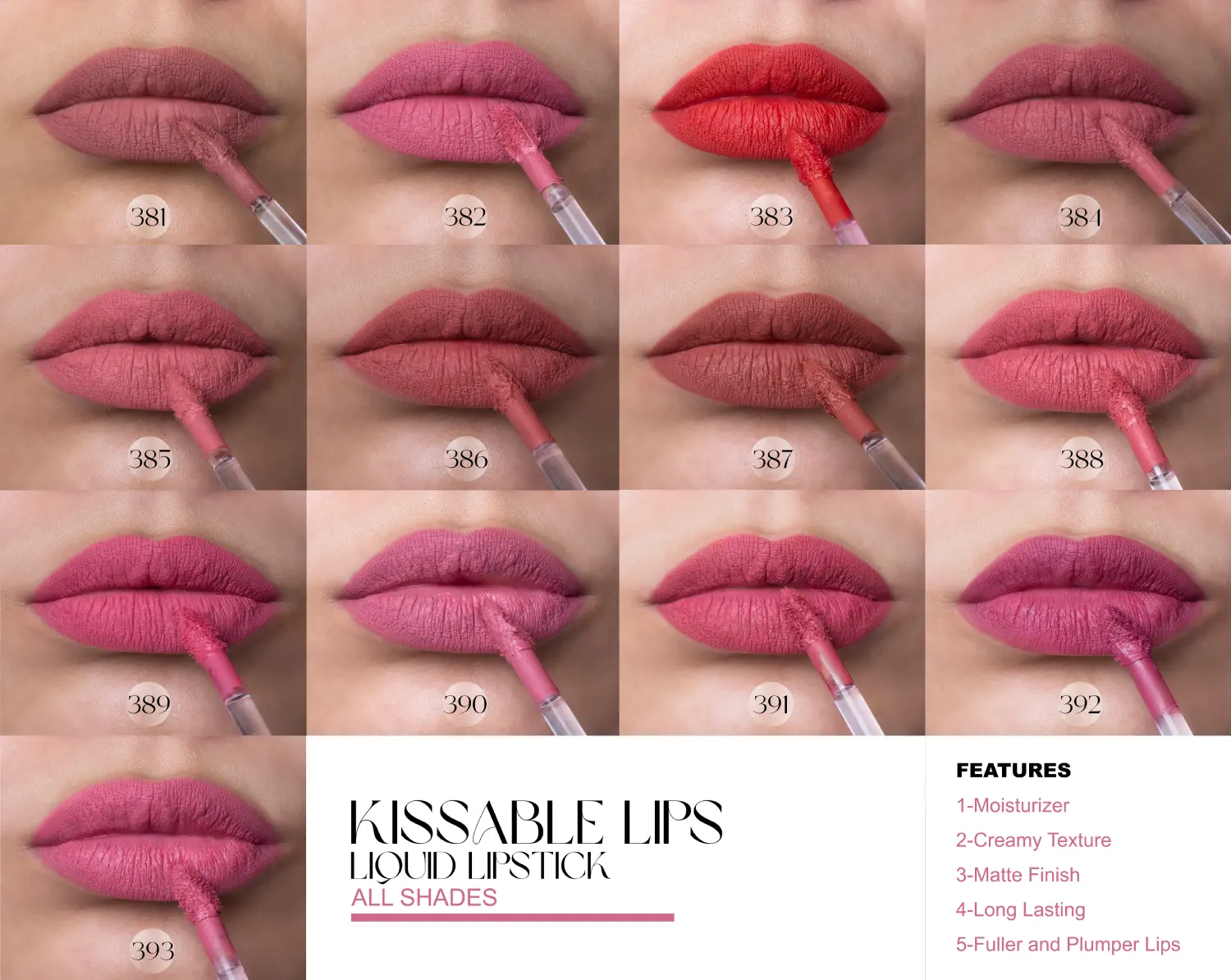 رژ ما کیس لدو 381 - Caress, 382 - Lilac, 383 - Romantic, 384 - Dream, 385 - Blossom, 386 - Charm, 387 - Bliss, 388 - Ecstase, 389 - Paradise, 390 - Desire, 391 - Elegant, 392 - Dignified, 393 - Energetic