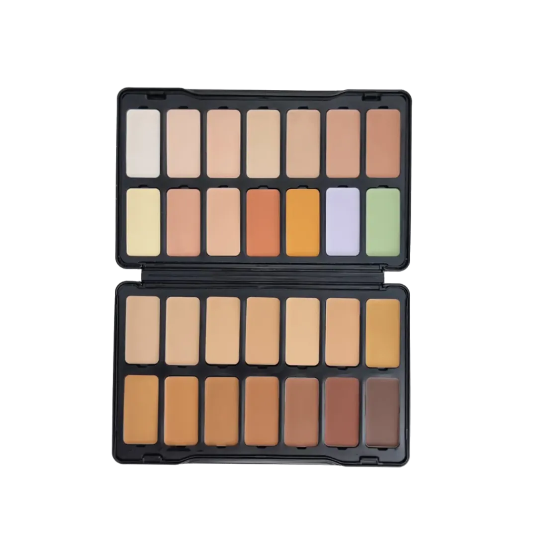 👩🎨 با این پالت، دیگر نیازی به چندین کرم یا کانسیلر جدا نداری؛ همه رنگهای لازم برای چهرهپردازی کامل در یک جعبهی شیک و کاربردی جمع شدهاند.