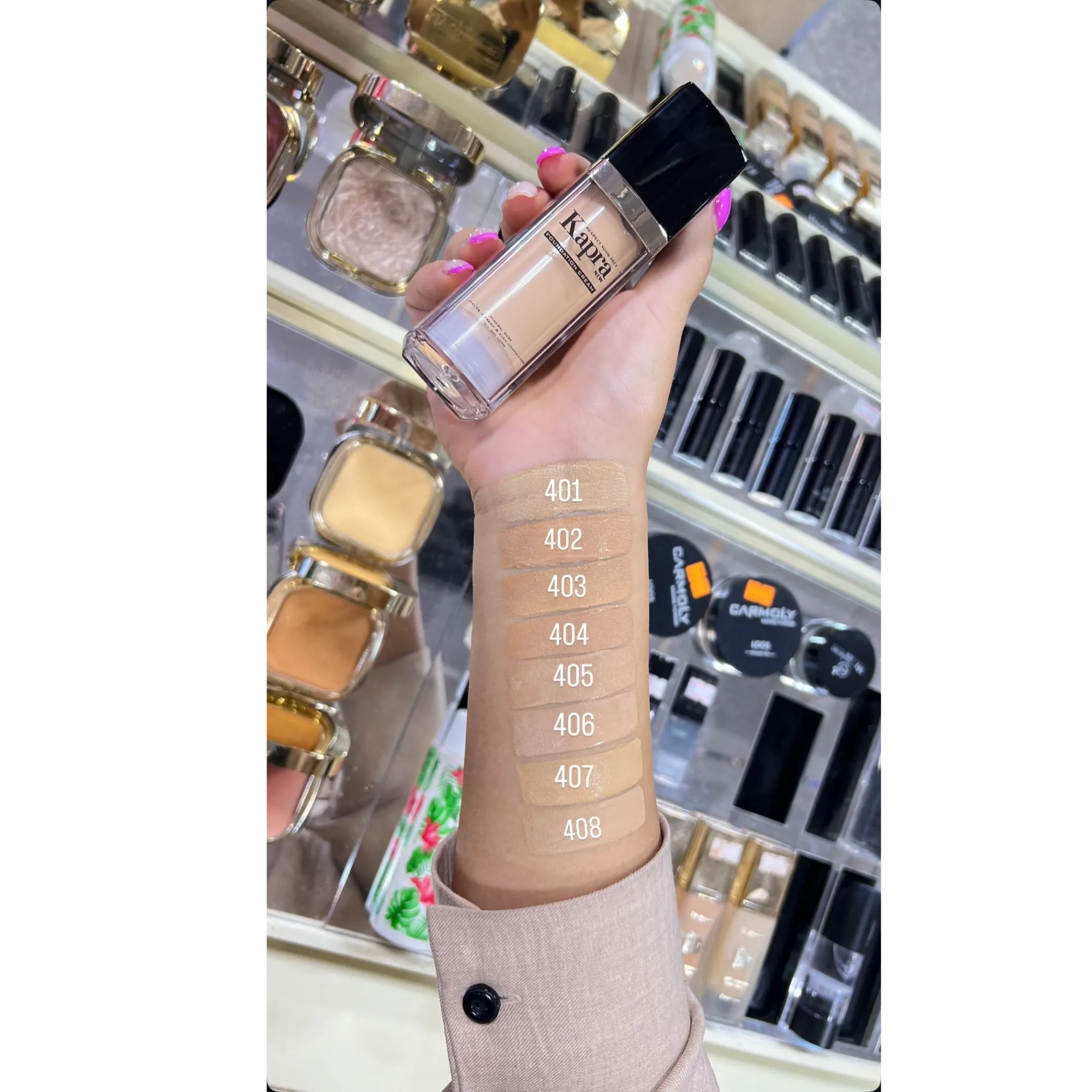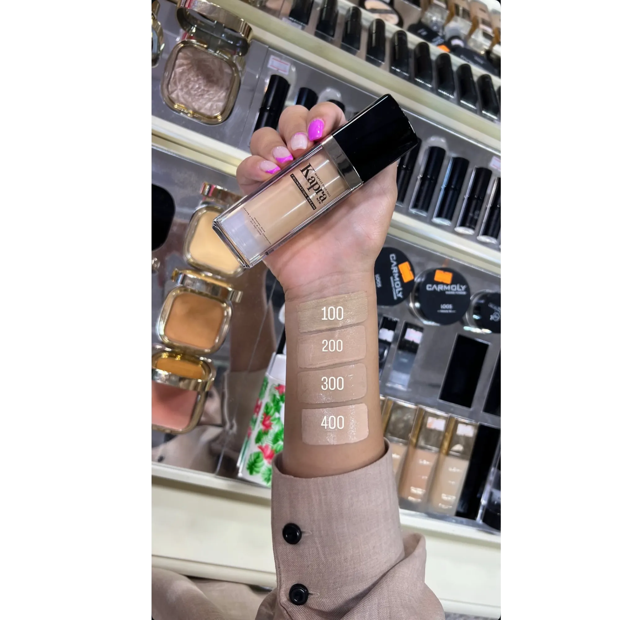 در انتخاب رنگبندی، کاپرا با طیفی متنوع از شماره ۱۰۰ تا ۴۰۸ پاسخگوی نیاز انواع تناژهای پوستی از روشن تا گندمی و سبزه بوده. این یعنی هر مشتری میتواند رنگ دقیق و هماهنگ با پوست خودش را پیدا کند، بدون نگرانی از تیرگی یا روشنایی بیش از حد.