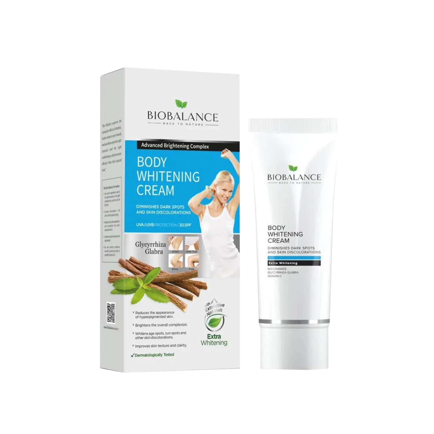 کرم روشنکننده بدن بایوبالانس، فرمولی پیشرفته و غنی برای داشتن پوستی یکنواخت، شفاف و درخشان است ✨🌸. این کرم با ترکیب مؤثر نیاسینامید، عصاره شیرینبیان و ویتامین C طراحی شده تا به کاهش تیرگیها، لکهای پوستی و تغییر رنگ ناشی از آفتاب، جای زخم و عوامل محیطی کمک کند.