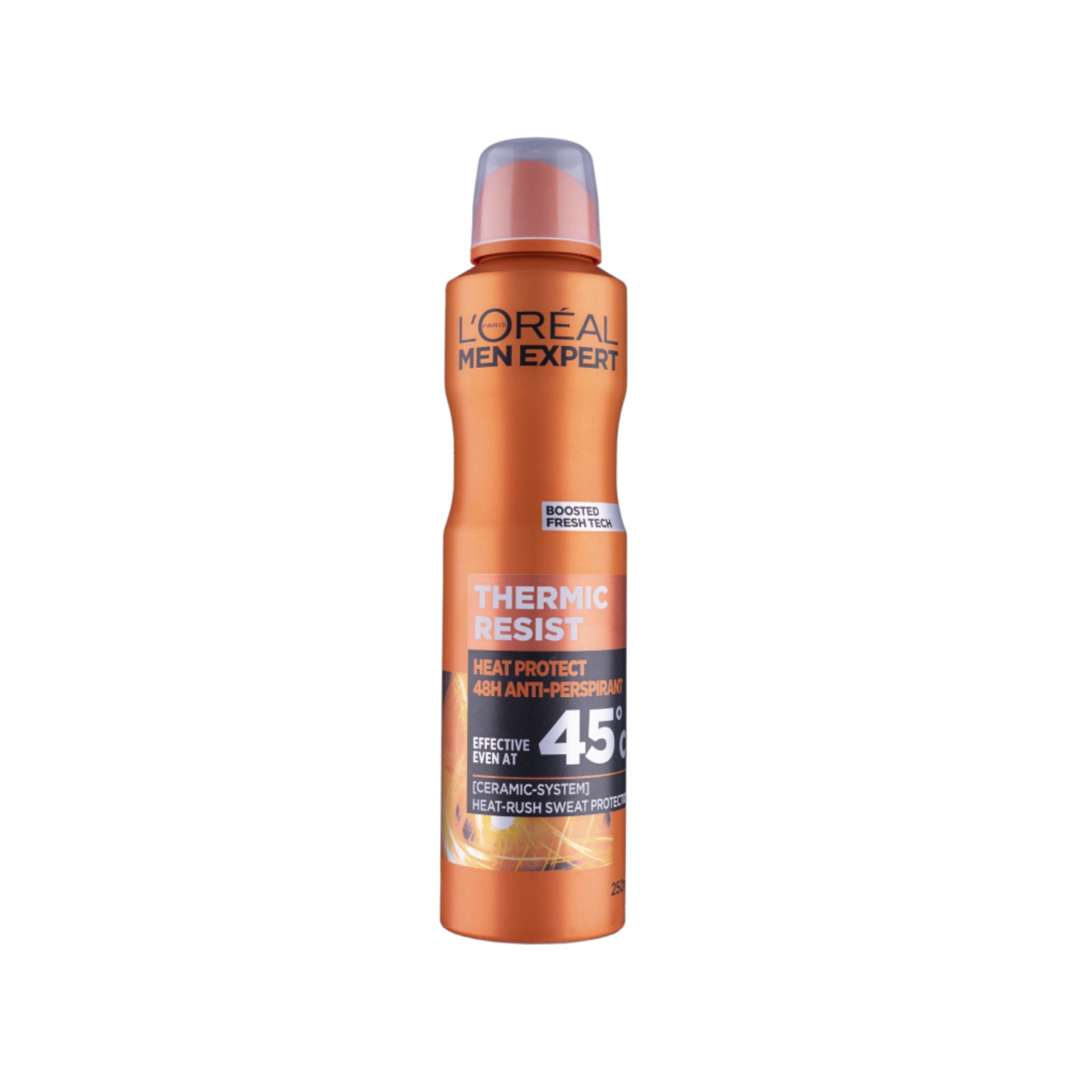 اسپری دئودورانت لورآل ترمیک رسیست (Thermic Resist) برای آقایانی طراحی شده که در شرایط آبوهوایی گرم، محیطهای شلوغ یا فعالیتهای سنگین به دنبال کنترل تعریق قدرتمند هستند. این دئودورانت، با بهرهگیری از فناوری Thermo-Protect، توانایی محافظت مؤثر در دمای بالا تا ۴۵ درجه سانتیگراد را دارد.